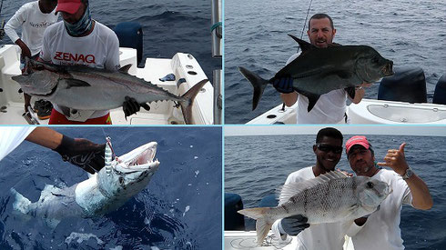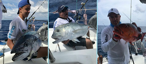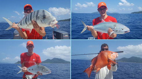Those days Greg had a group of anglers from Belgium that were running a jigging and popping competition among themselves and as they were too many for just one boat Simon`s Island Rhythm skippered by his son Brendon were part of the event. During their tournament the group caught good amounts of fish but as before the big ones were missing at the Drop Off. Same time Mervin and our Israeli friend Kobi who had come over from Mahe after his cat trip were dealing with the same headache.