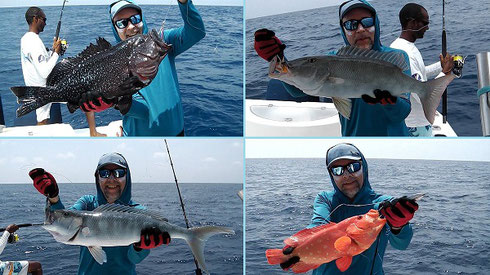 On the 5th it was pretty much the same story for him and his fishing partner Oliver. Not a single Amberjack all day but at least we finally got to see a not so large though Doggie after a while. And again the Jobfish were nuts so the total tally added up once more to 50 or so fish caught.