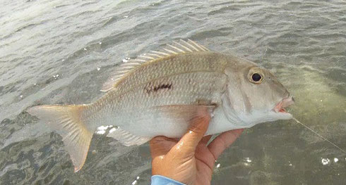 Last but not least a glance at my own fishing but this will be the shortest part: after the fingers had healed the many trips I accompanied only left time for two short fly fishing stints. These produced the usual small catches while this one Thumbprint Snapper stood out a bit. Seemed pretty large to me but probably just because all recent catches had been so small.